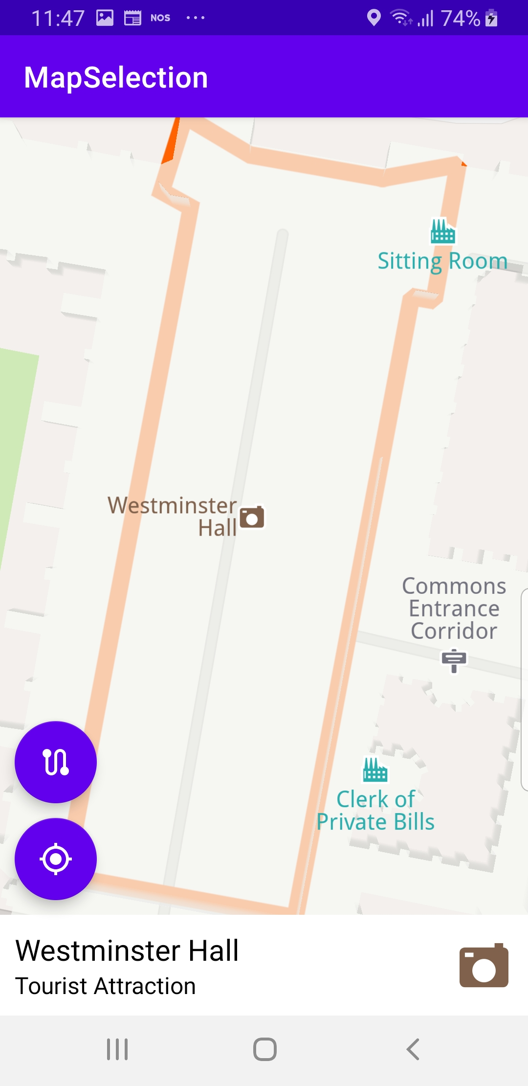 , is used to fly back to the currently selected precalculated route, after panning away from it for example; this button is shown after the route is calculated and rendered.