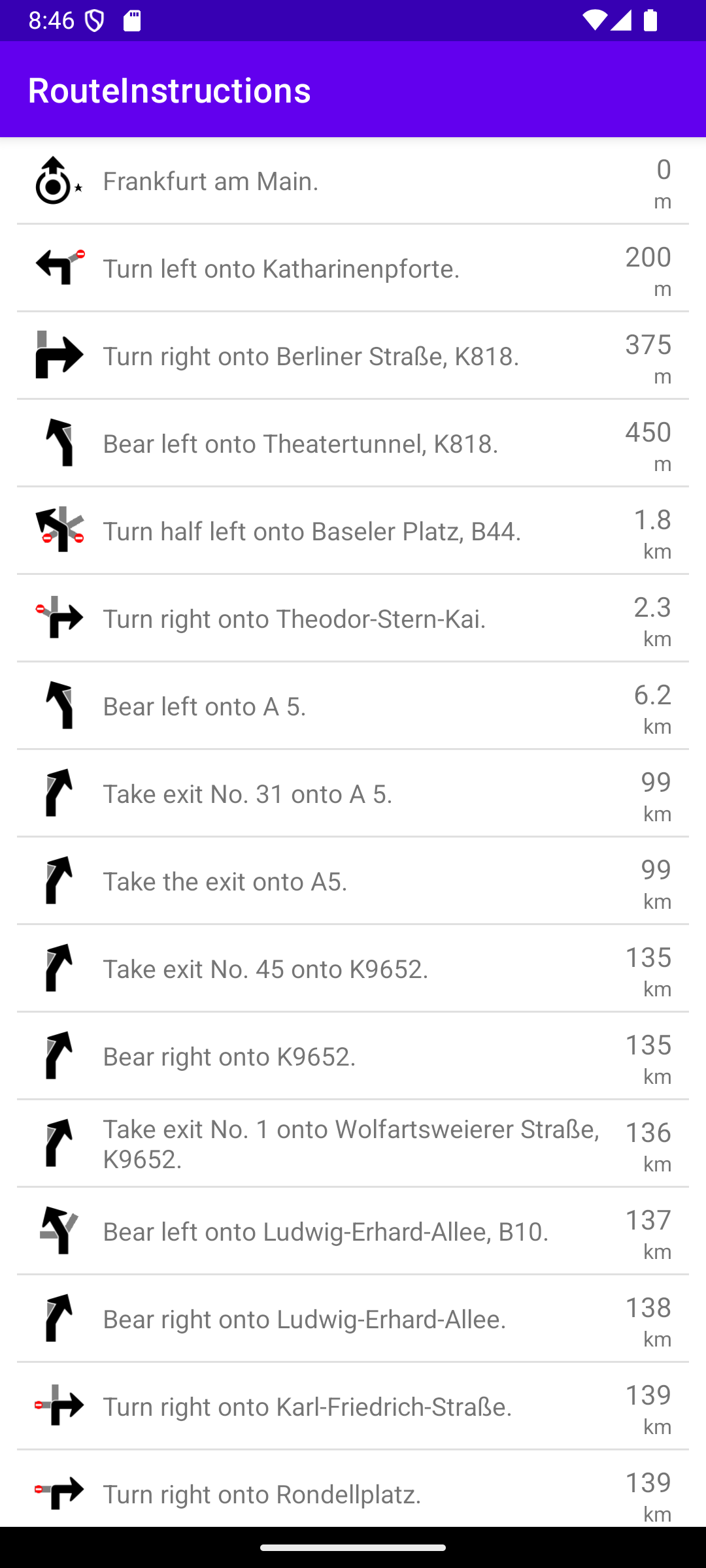 Route instruction list