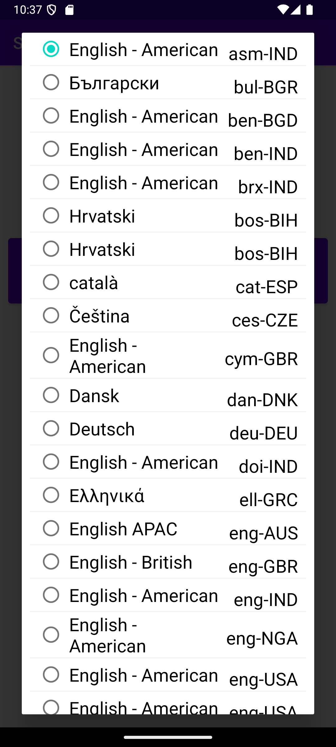 List of available TTS languages