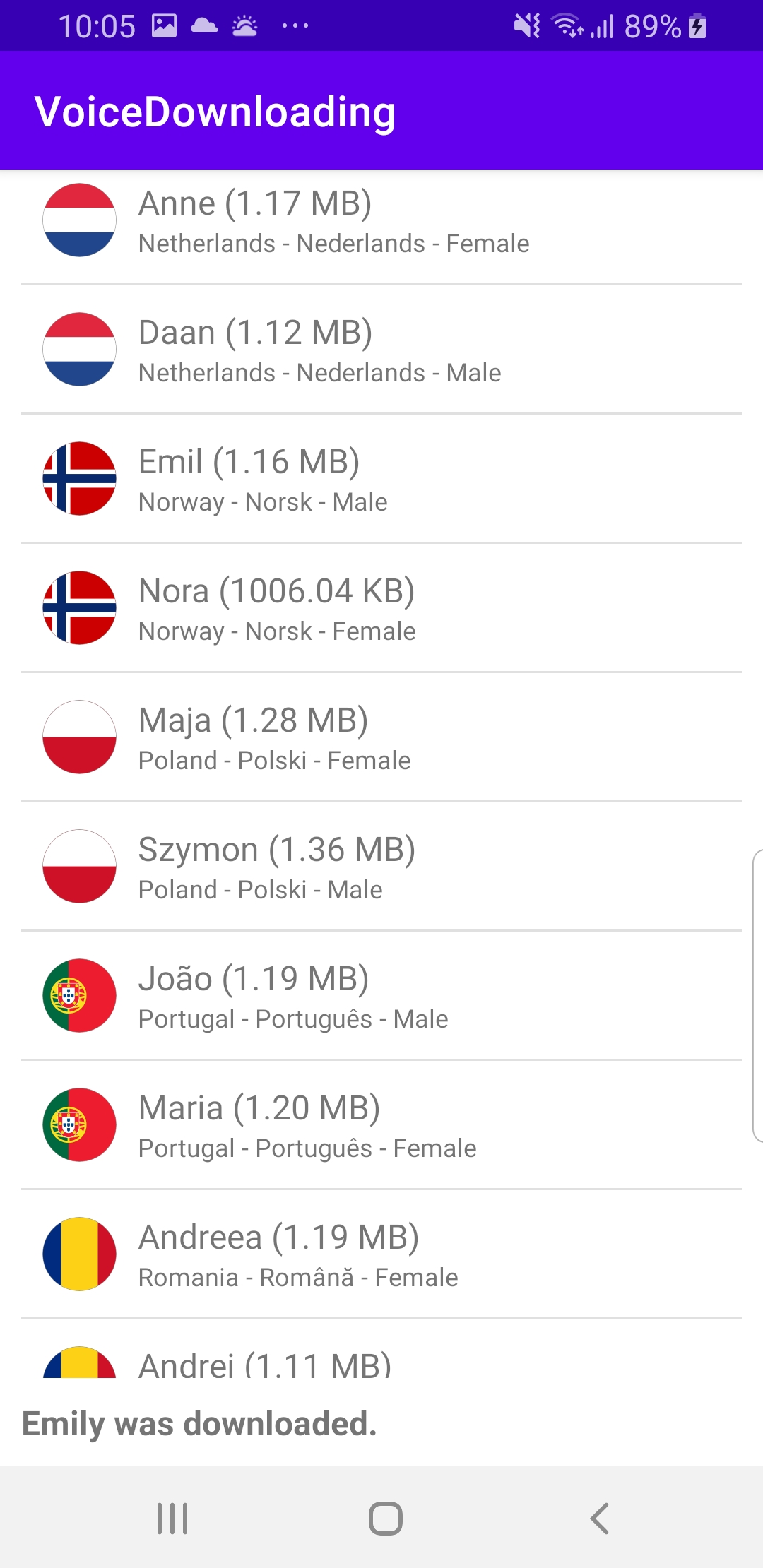 In this guide you will learn how to list all navigation instruction voices available on the server, indicating which are already downloaded, and download a voice.