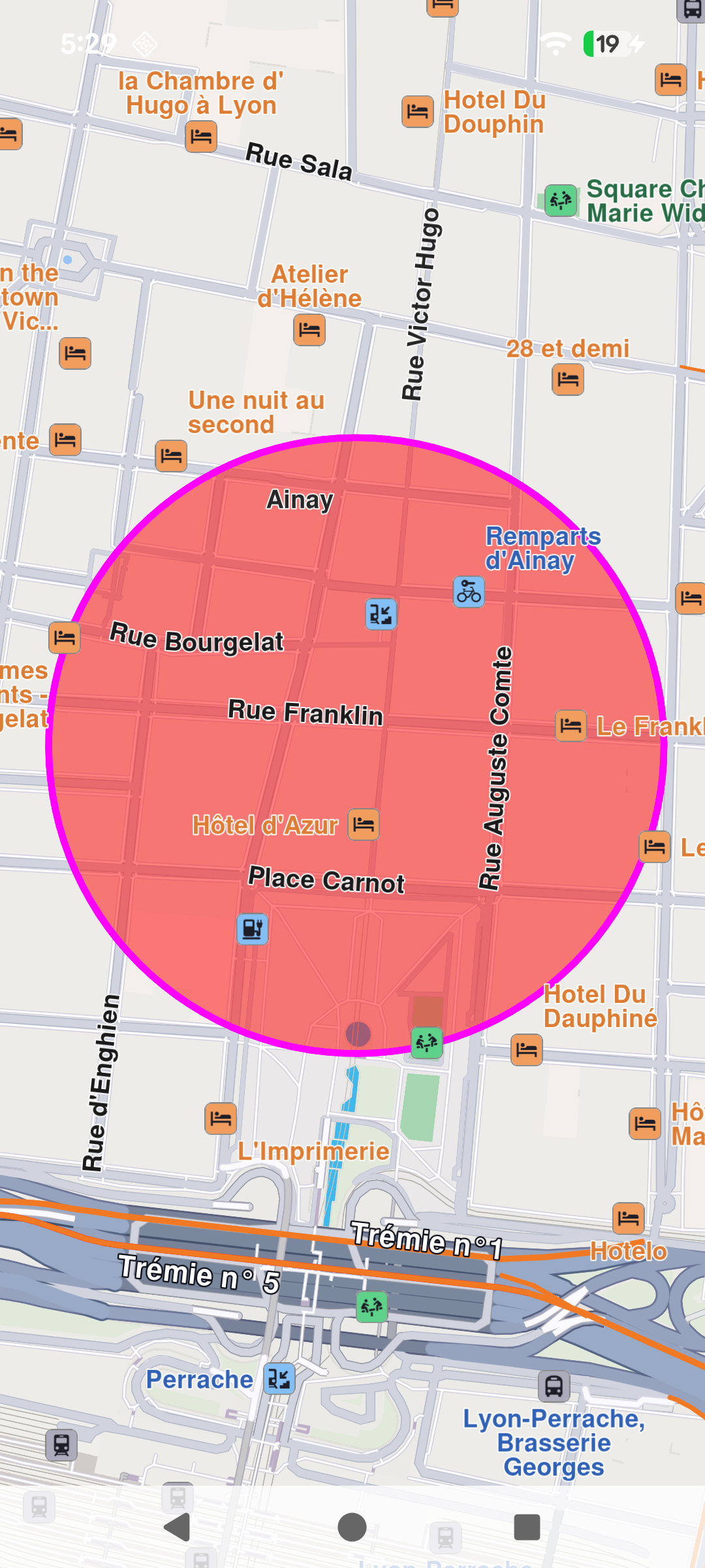 Marker(coordinates: Coordinates, radius: Int)creates a circular marker centered at the given coordinates with a defined radius. - With Coordinates, horizontal radius, and vertical radius in meters :