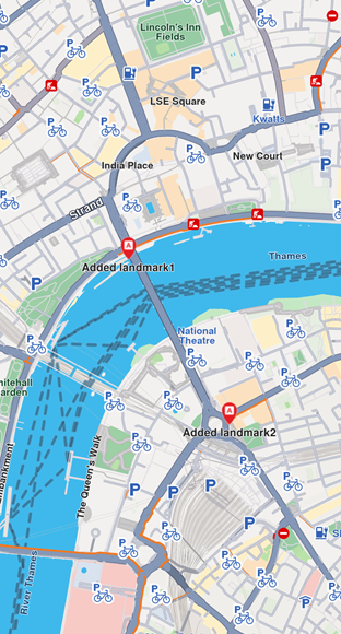 This allows filtering the default map data. Next, we might want to also add custom landmarks to the map (see the next section).