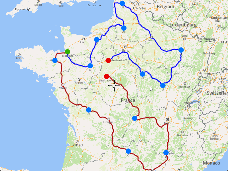 Once the optimization is complete and a solution has been found, we can display the solution on the map.