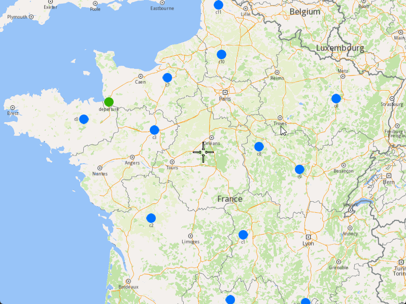 Once the optimization is complete and a solution has been found, we can display the solution on the map.