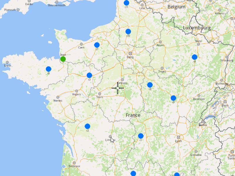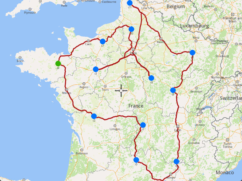 Once the optimization is complete and a solution has been found, we can display the solution on the map.