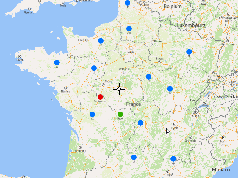 Once the optimization is complete and a solution has been found, we can display the solution on the map.