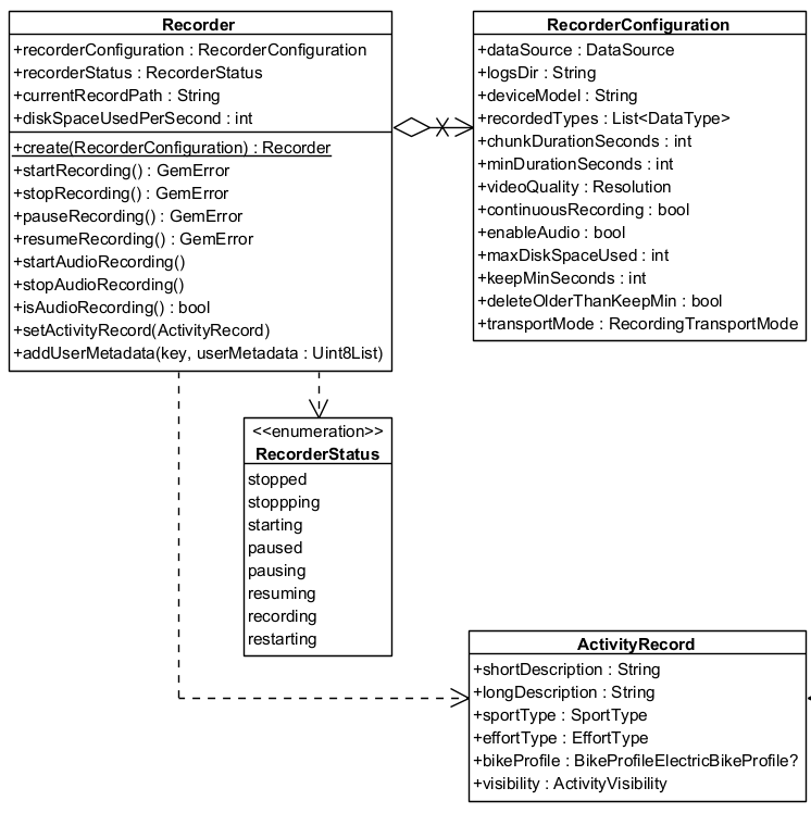 In the following class diagram you can see the main classes used by the Recorder and the relationships between them: