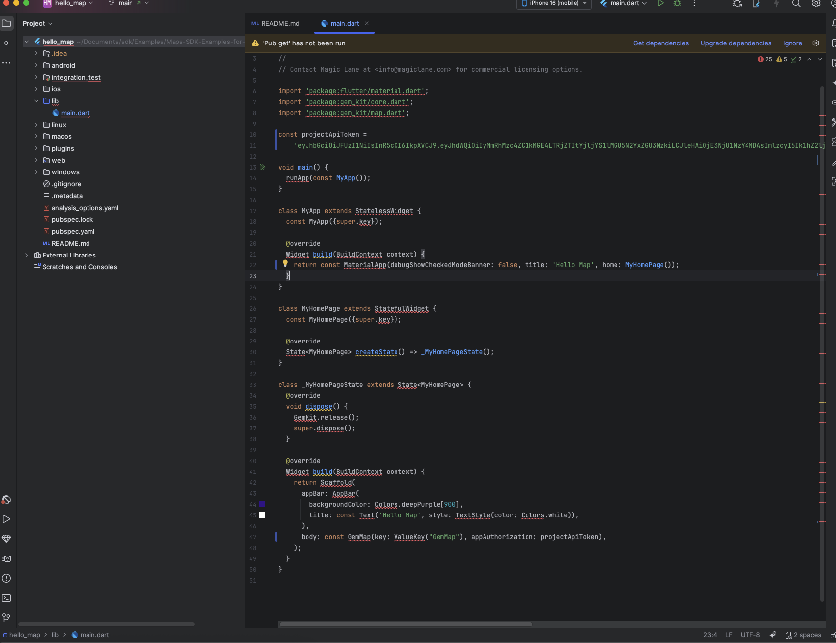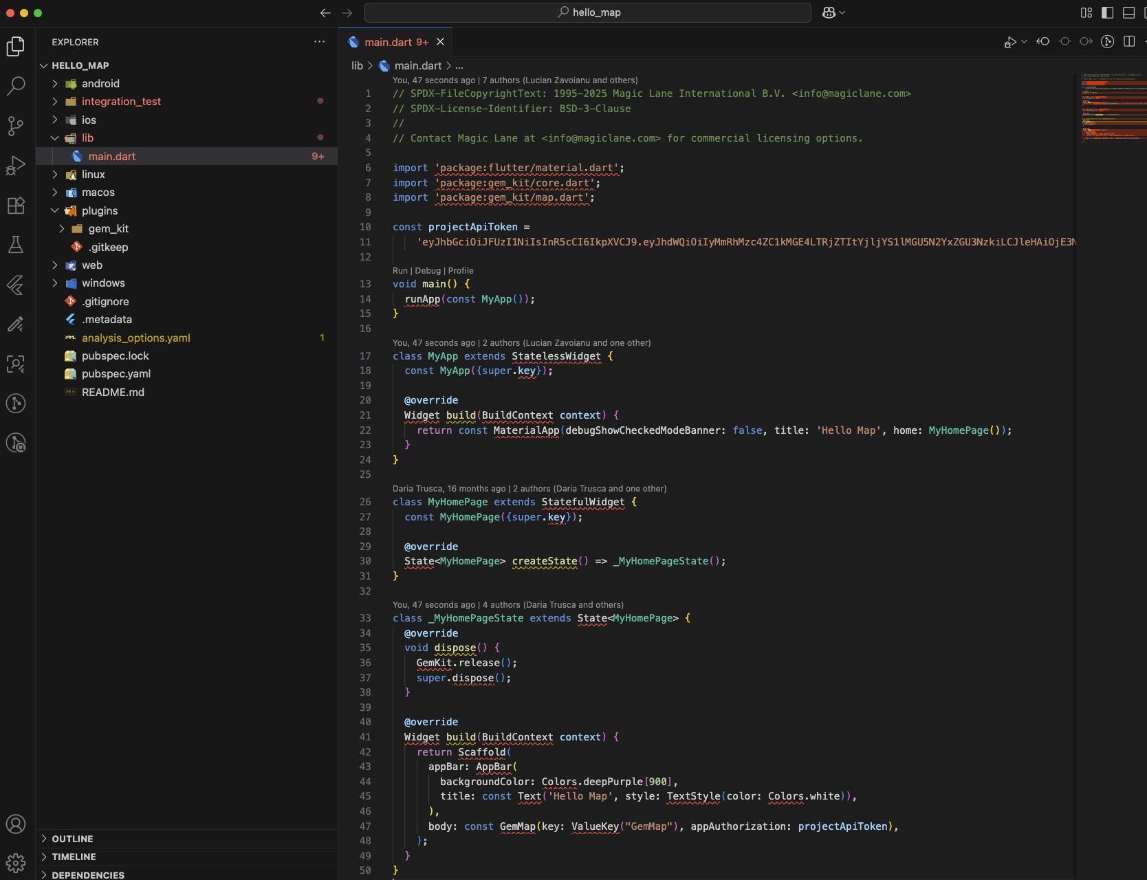 Once you have your API key, you need to set it in the example project. Open the lib/main.dart