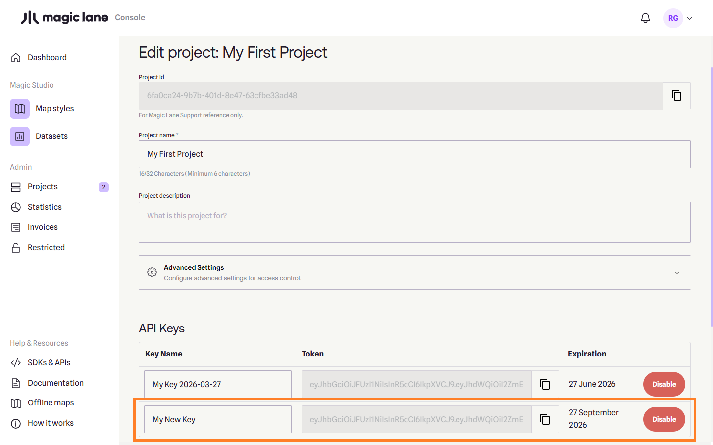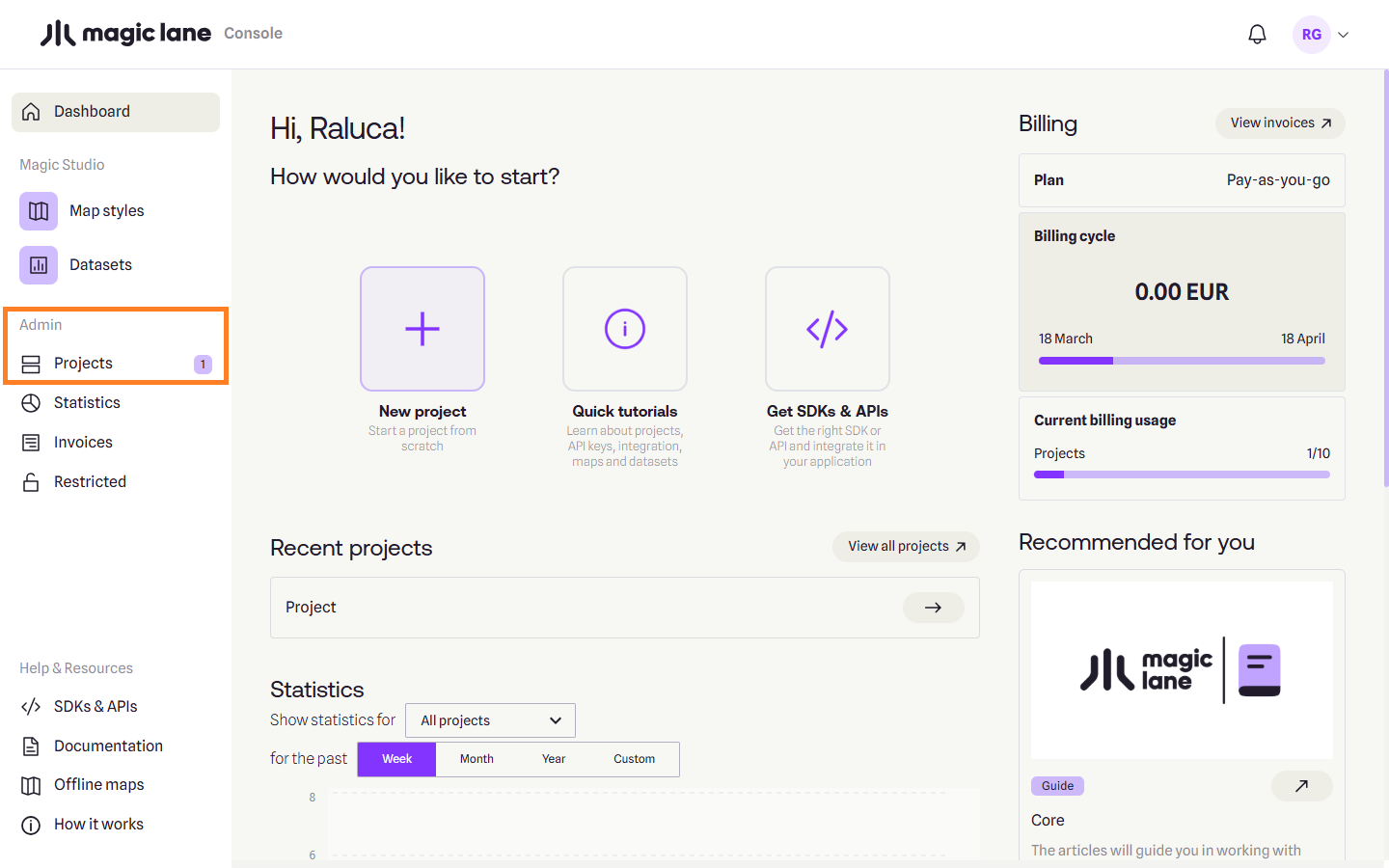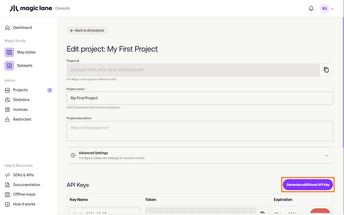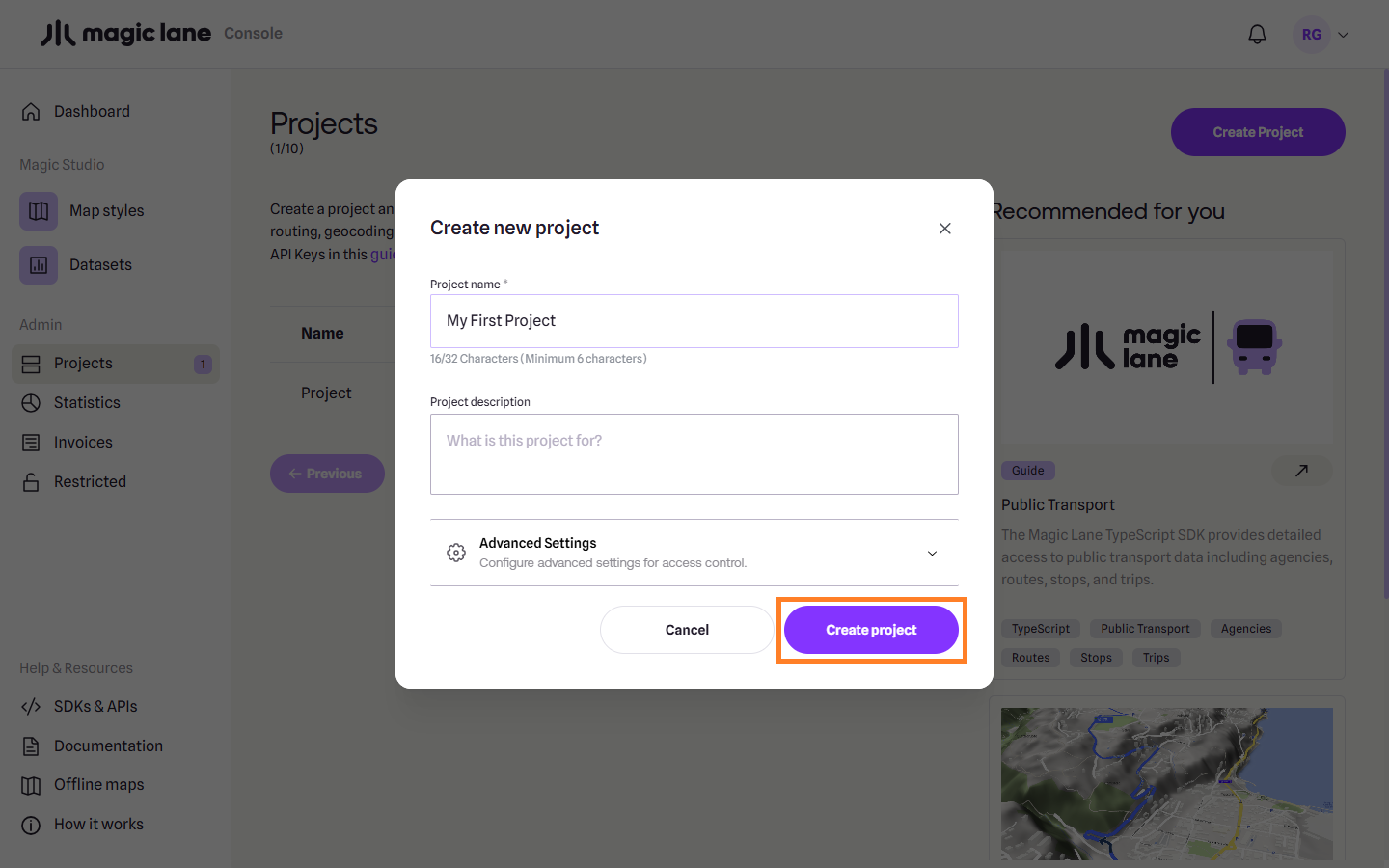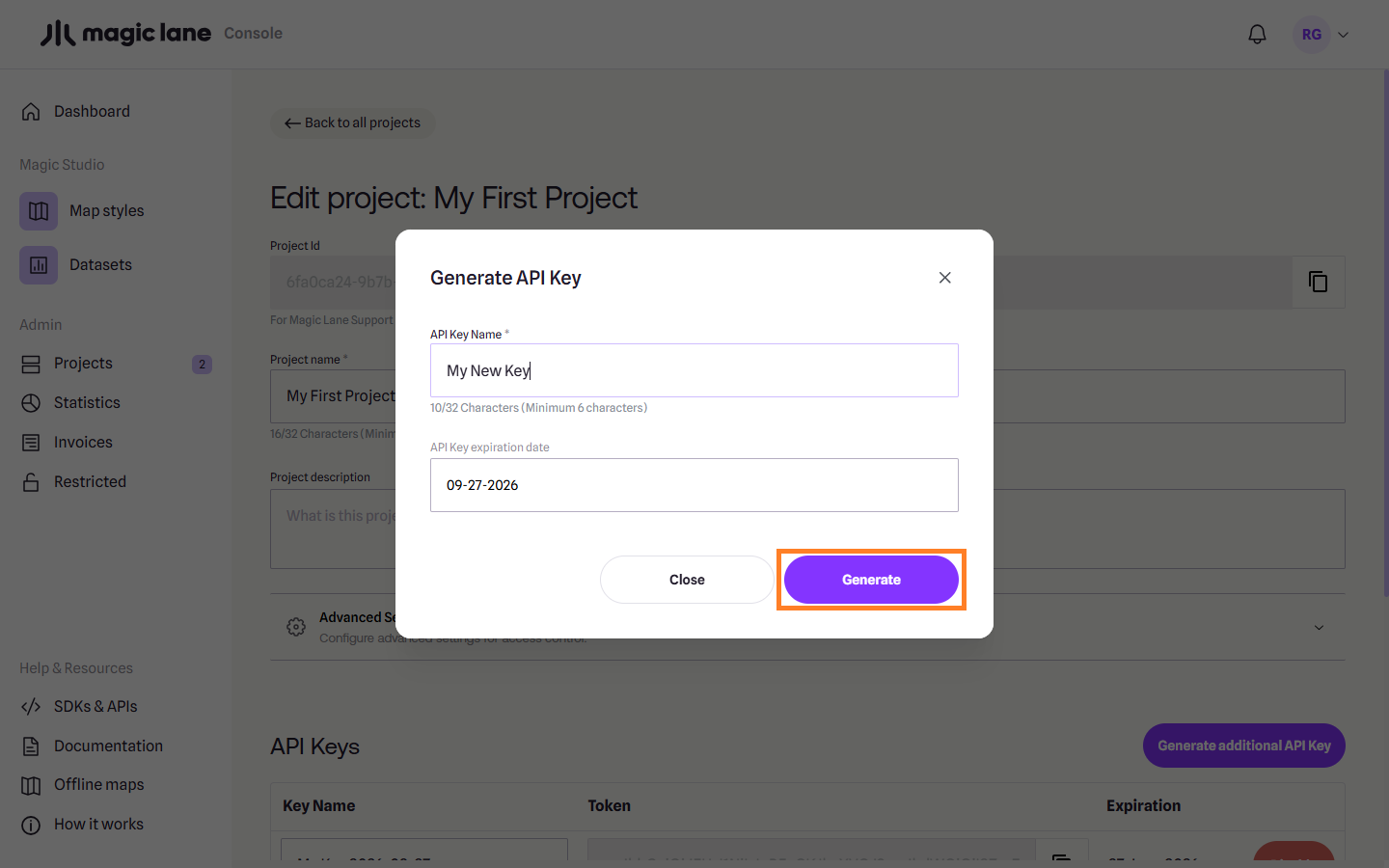 In this guide you will learn how to create your free Magic Lane account and your first project, and how to get your API Key.