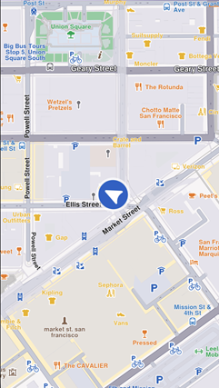 The location of the device is shown by default using an arrow position tracker. If setLiveDataSource has been successfully set and the required permissions were granted then the position tracker showing the current location should be visible on the map as an arrow.